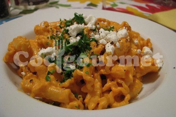 Depois que o macarrão estiver cozido, escorra bem a massa e sirva em pratos individuais, regando com bastante molho roquefort.