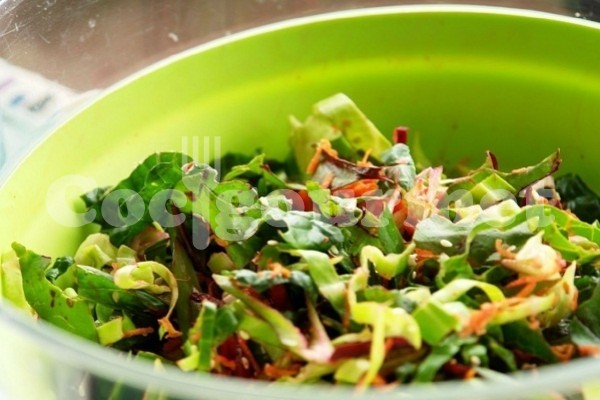Lave bem a alface, corte em tiras e adicione à salada infantil. Cozinhe as cenouras até elas ficarem bem molinhas, deixe esfriar e depois adicione também à salda infantil.